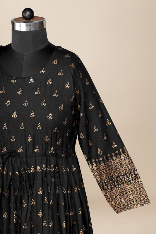 Golden Printed Frock For Women